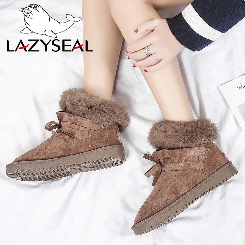 New Arrival LazySeal 2019 Shoes Women Suede Real Rabbit Fur Winter Snow Boots Female Pleated Plush Lining Warm
