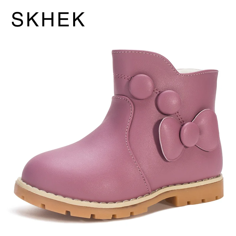 New Product SKHEK 2018 Spring Autumn Fashion Warm Children Boots Big Butterfly Knot Leather Shoes Girls Ankle B