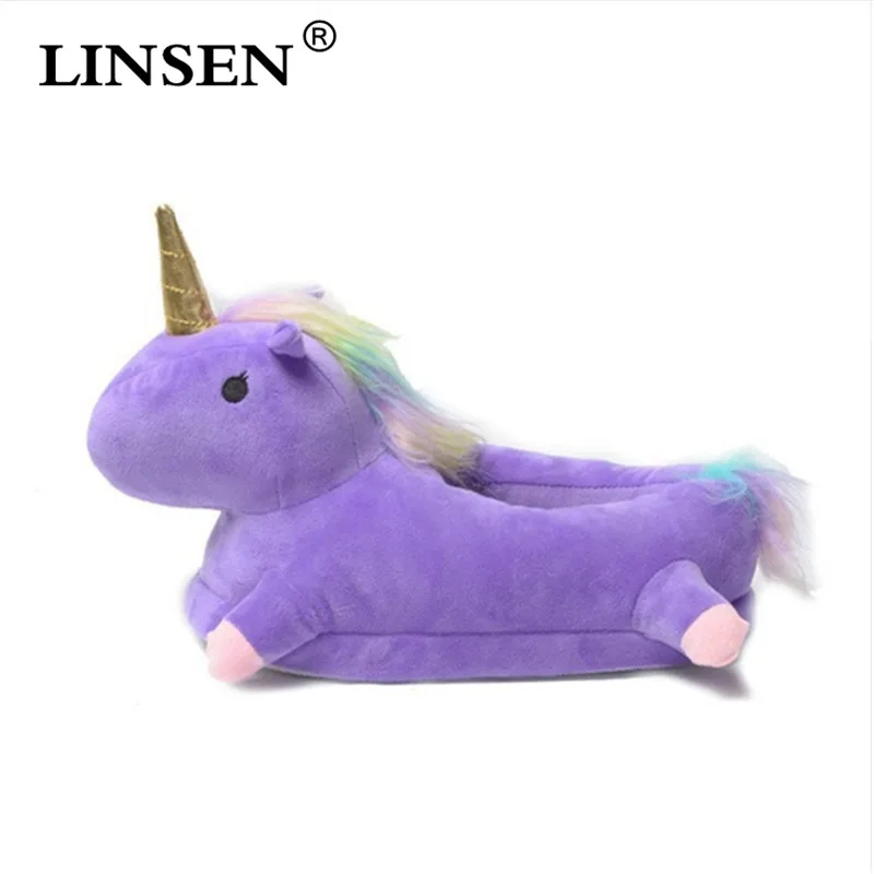 2019 Winter lovely Home flock latex solid indoor plush unicorn slippers house mules platform flip flops shoes pink purple white :Click Here
